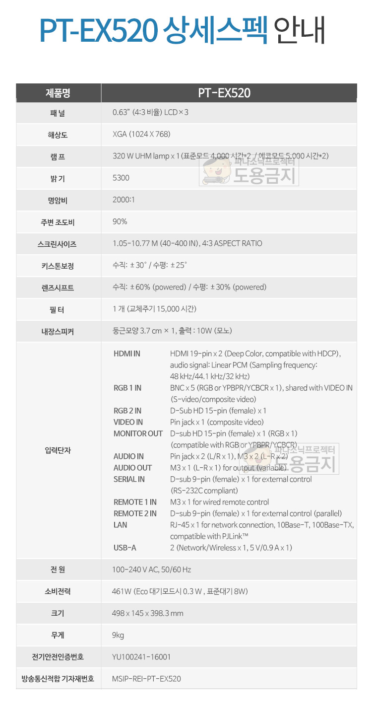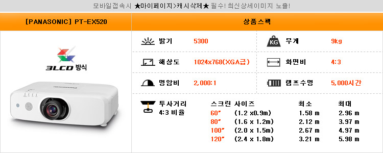 [파나소닉] PT-EX520 LCD / XGA급 / 밝기5300