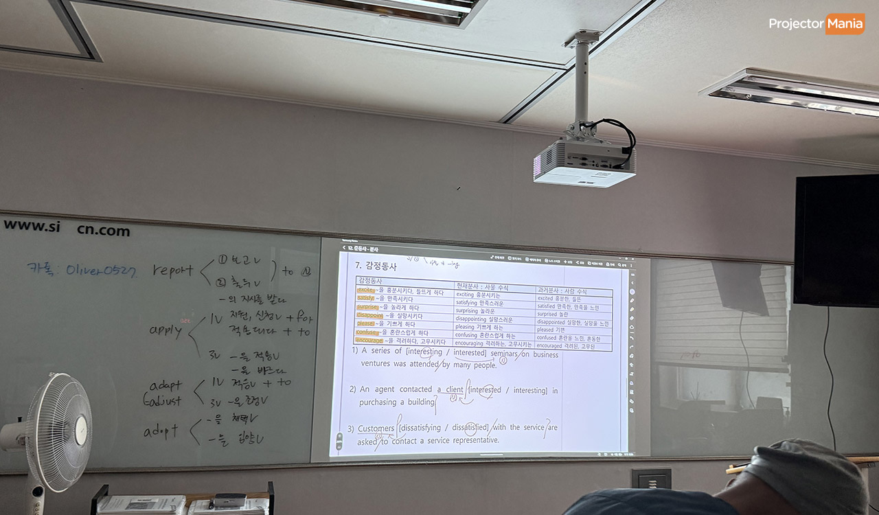 [회의실/학원강의실] 강의용 빔프로젝터 설치사례 | 학원 수업에 최적화된 풀HD 단초점 프로젝터 MH748ST 설치 후기 |