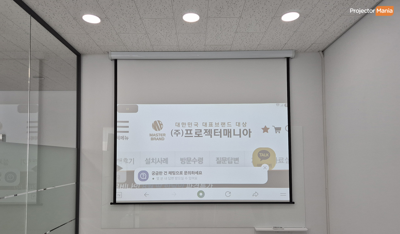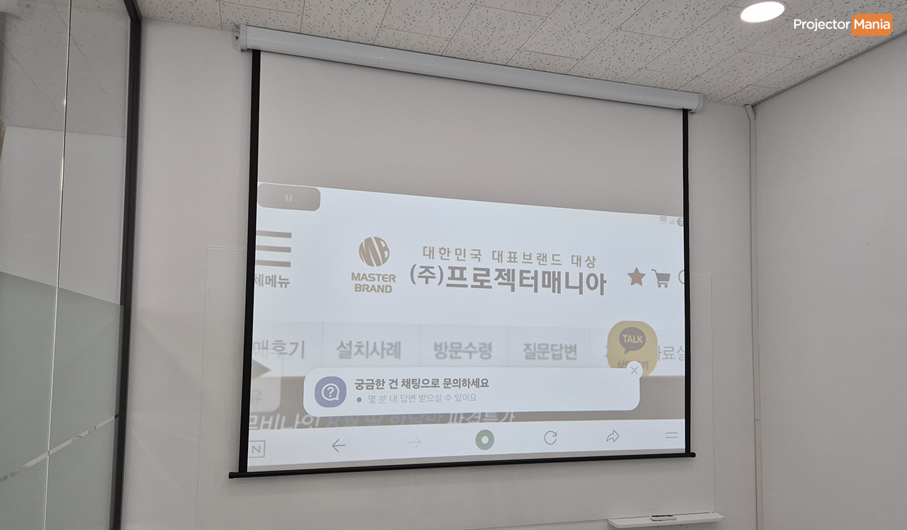 [회의실/학원강의실] 사무실 회의용 강력추천! 비비텍 MH627 빔프로젝터 + 전동노출 100인치 설치 시공 사례 |