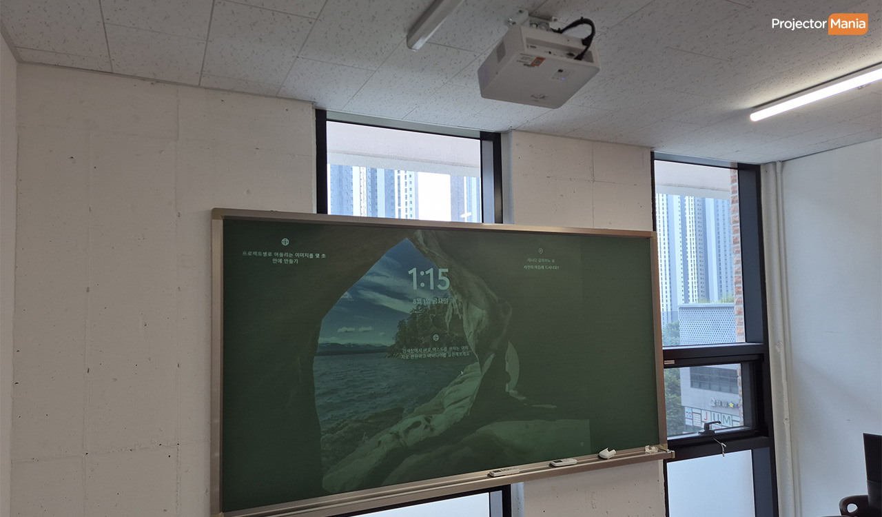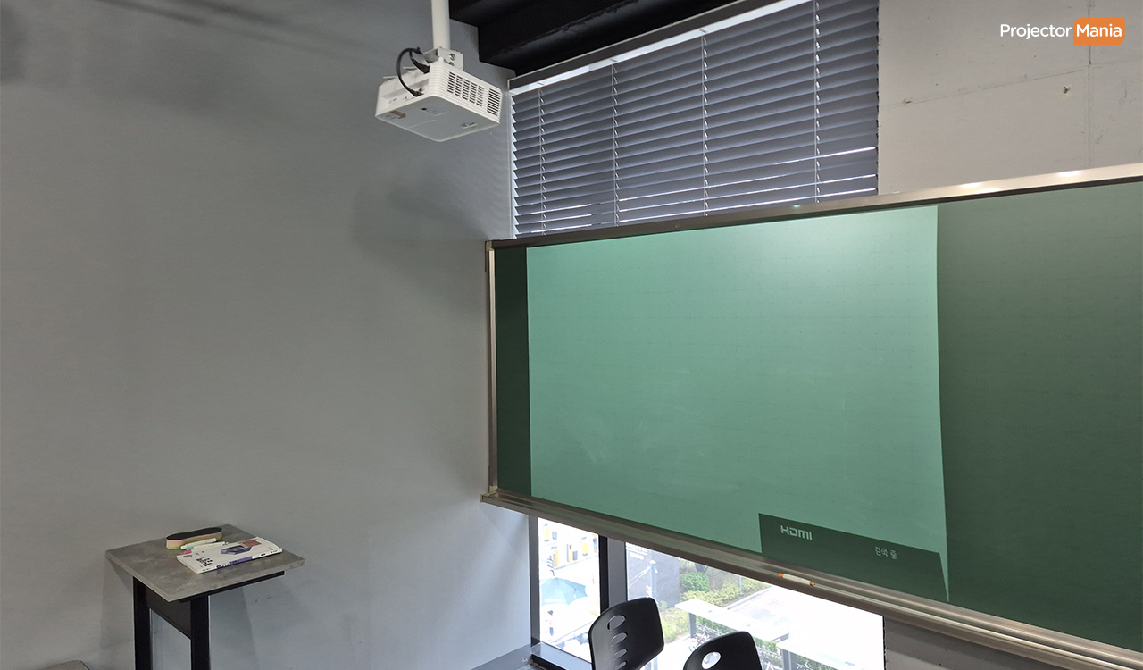 [회의실/학원강의실] 학원 강의실 단초점 빔프로젝터 설치 후기 – 비비텍 MW642ST 설치 사례 |