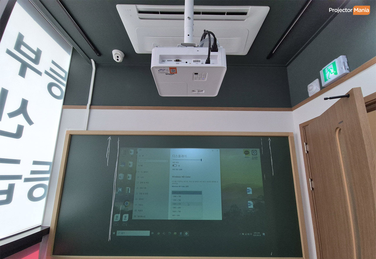 [회의실/학원강의실] 학원 강의용 빔프로젝터 설치사례 | 비비텍 MH748ST 단초점 풀HD 5000안시 |