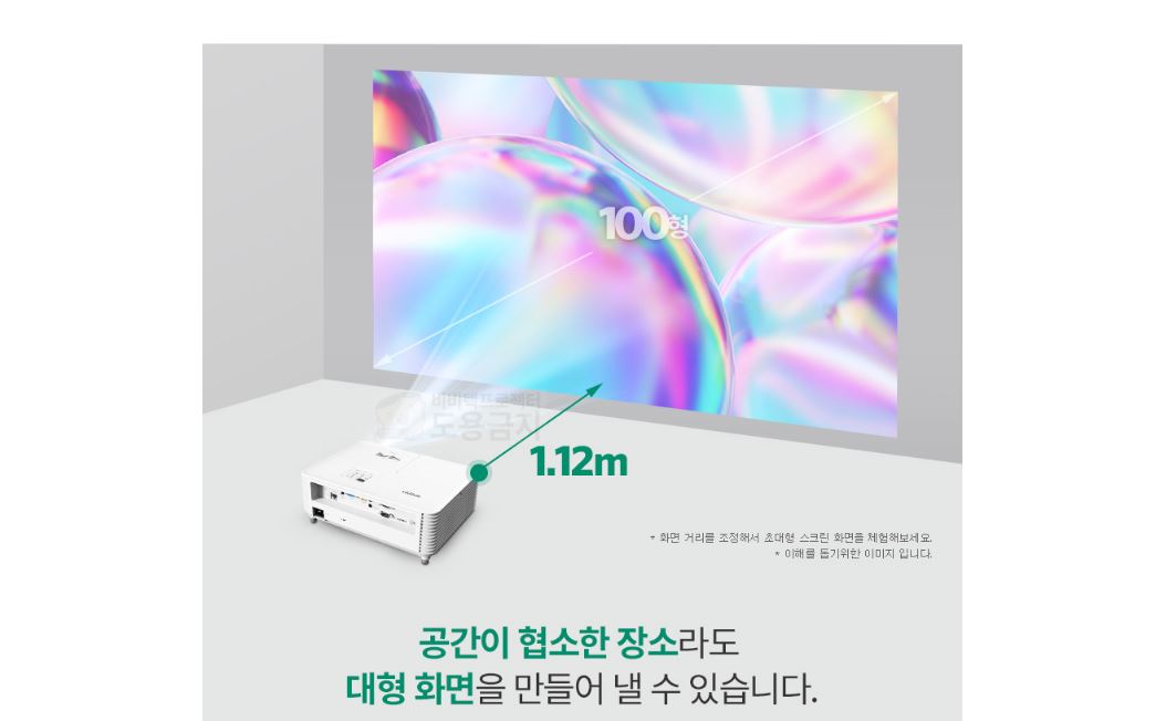 100인치 기준 1.12M 거리로 투사 거리가 짧습니다. ![]()