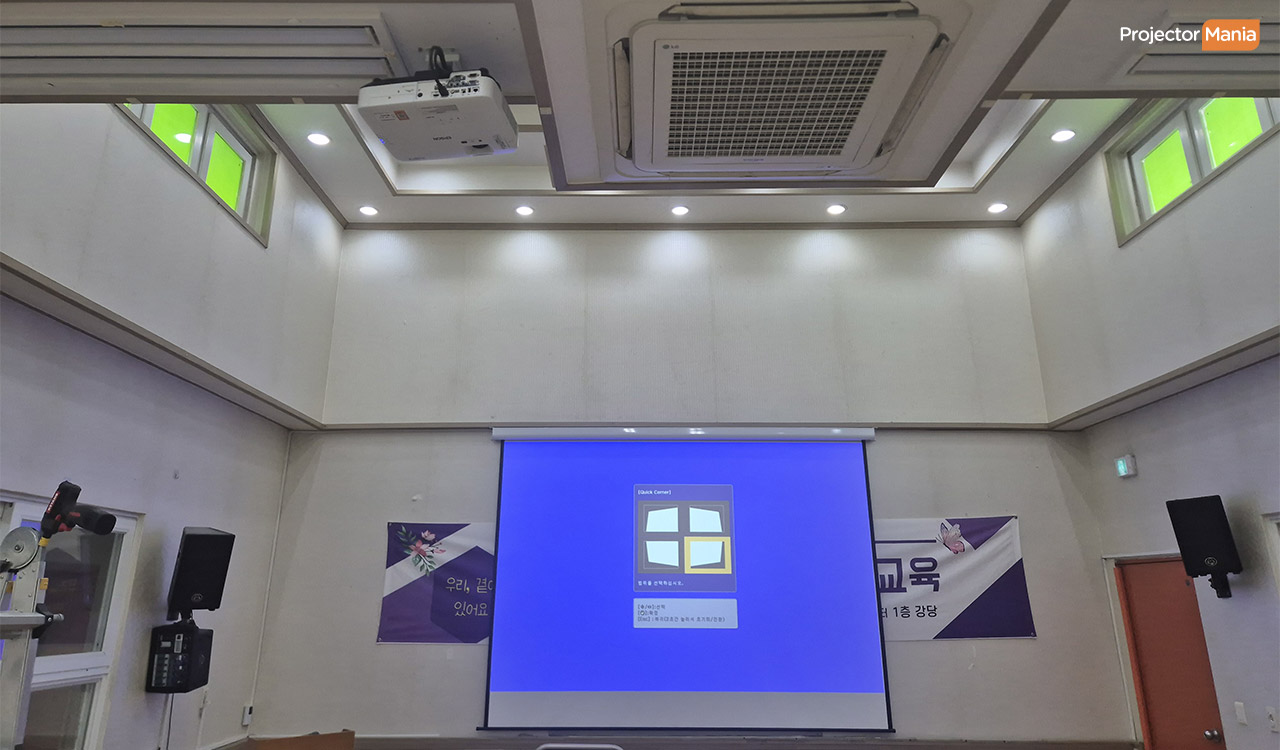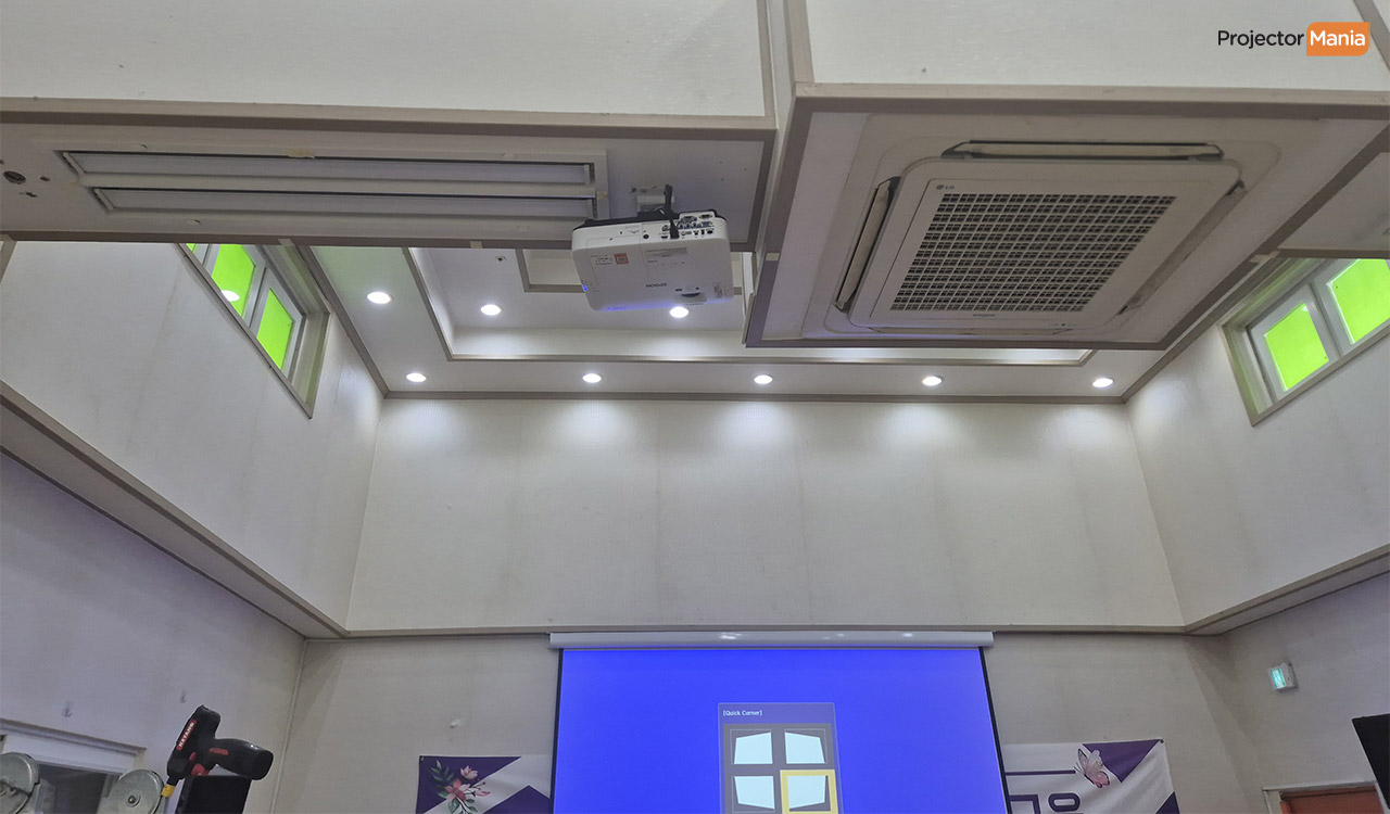 [회의실/학원강의실] 수원 꿈 행복나눔재단 엡손 EB-2250U 빔프로젝터, 전동스크린150인치 설치 시공 |