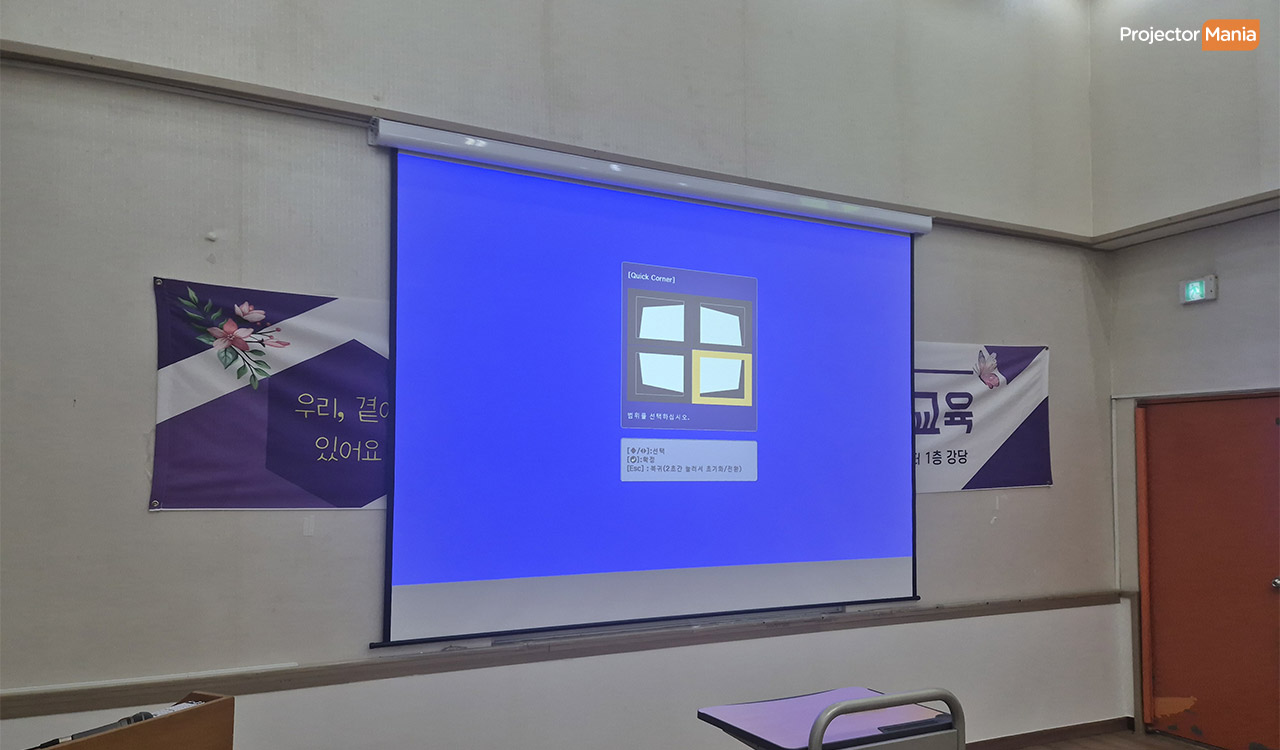 신규 제품 구매 + 설치 요청을 주셨어요. 천장이 높고, 조명이 밝은 공간이라 “불을 켜도 선명하게 보이는 프로젝터”를 원하셨습니다. ![]()