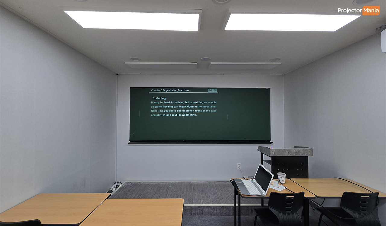 ✔️ 기존 칠판을 그대로 활용하고 싶은 학원 ✔️ 낮 시간 수업이 많아 밝은 환경에서도 선명한 투사가 필요한 경우 ✔️ 수업 효율성과 자료 전달력을 동시에 강화하고 싶은 분들