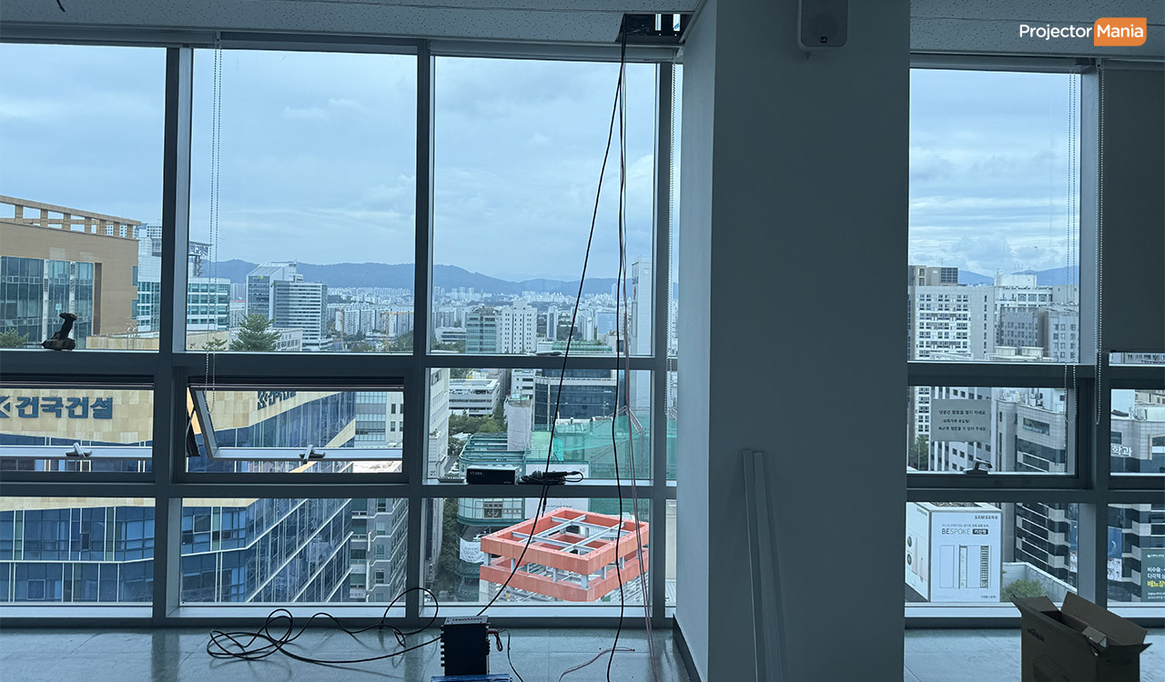 제품만 이전해서 설치 하면 된다고 생각하셨나요? 막상 해보면 쉽지 않아요. 브래킷이 안 맞고, 전원선이 짧고, 초점도 틀어져요. 특히 천장형 모델은 각도 하나만 잘못돼도 화면이 삐뚤거나 초점이 흐려져요. 결국 전문가의 손길이 필요해요. ![]()