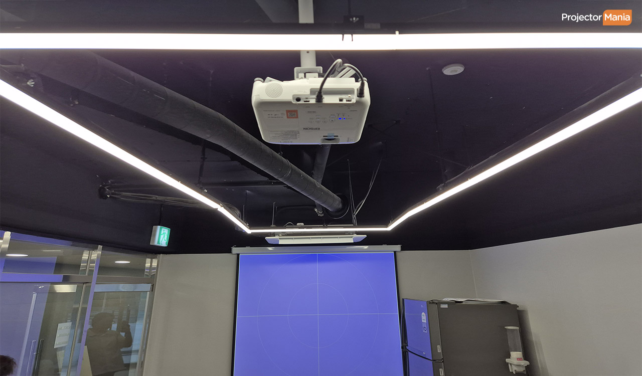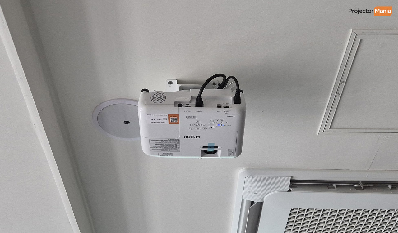 설치된 제품은 최신 모델인 엡손 EB-X52 빔프로젝터와 100인치 전동 스크린입니다 .