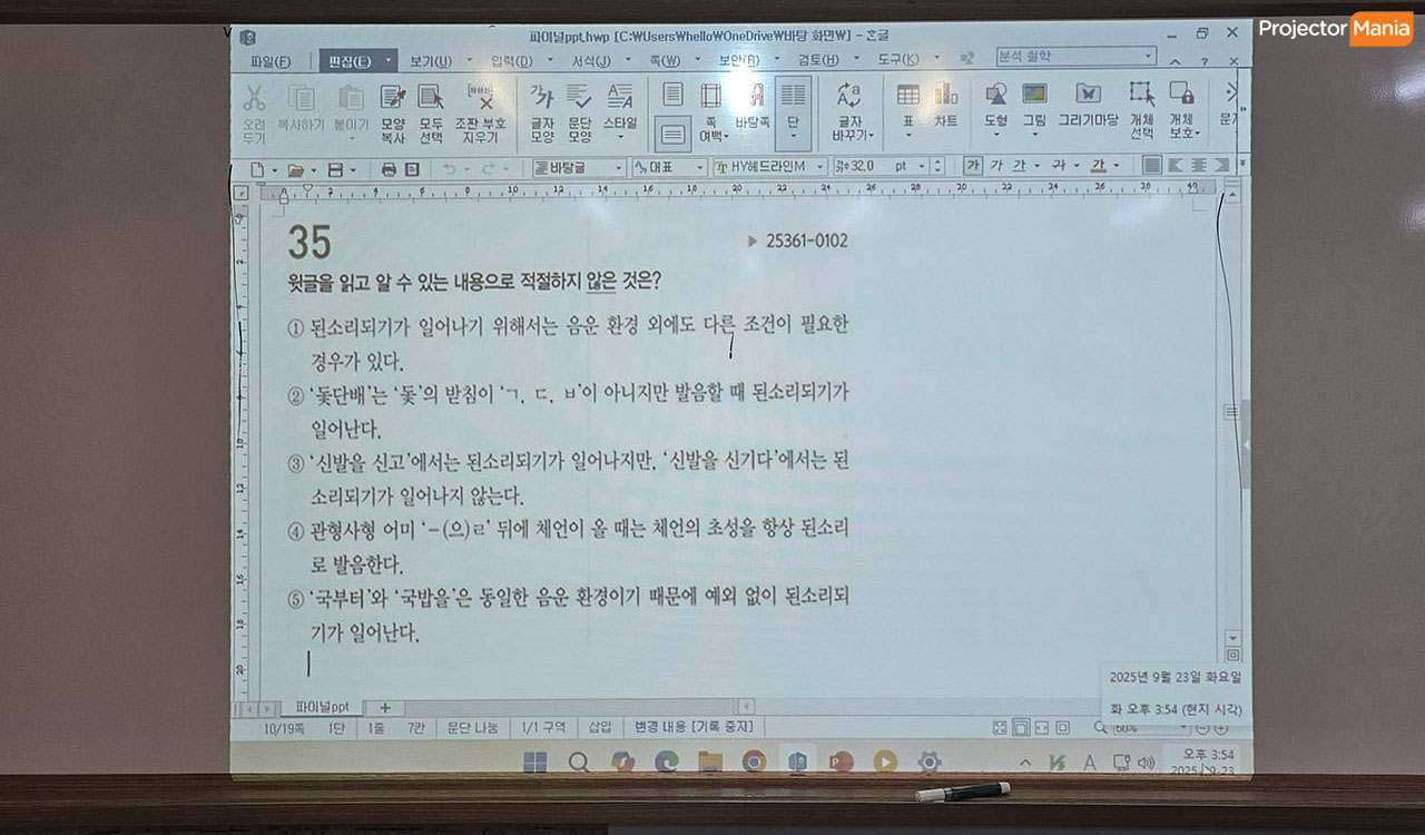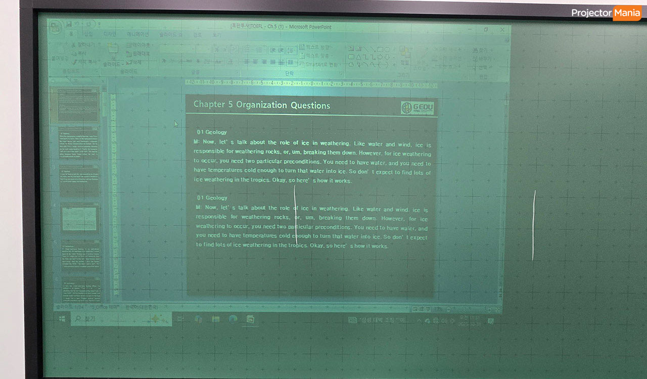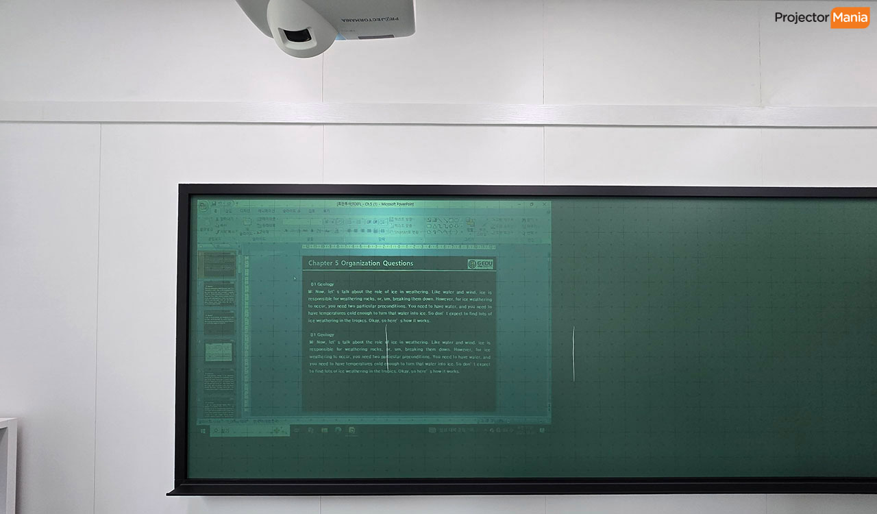 학원 수업은 ✔ PPT ✔ 문제 풀이 ✔ 교재 스캔 이미지 ✔ 텍스트 위주 자료 비중이 높습니다. 문서 그대로 선명하게 투사되기 때문에 실제 설치 후 고객님들께서는 이렇게 말씀해주십니다. “칠판위에 바로 투사되어 힘들게 판서할 필요 없으니” 수업 집중도가 올라가요 ![]()