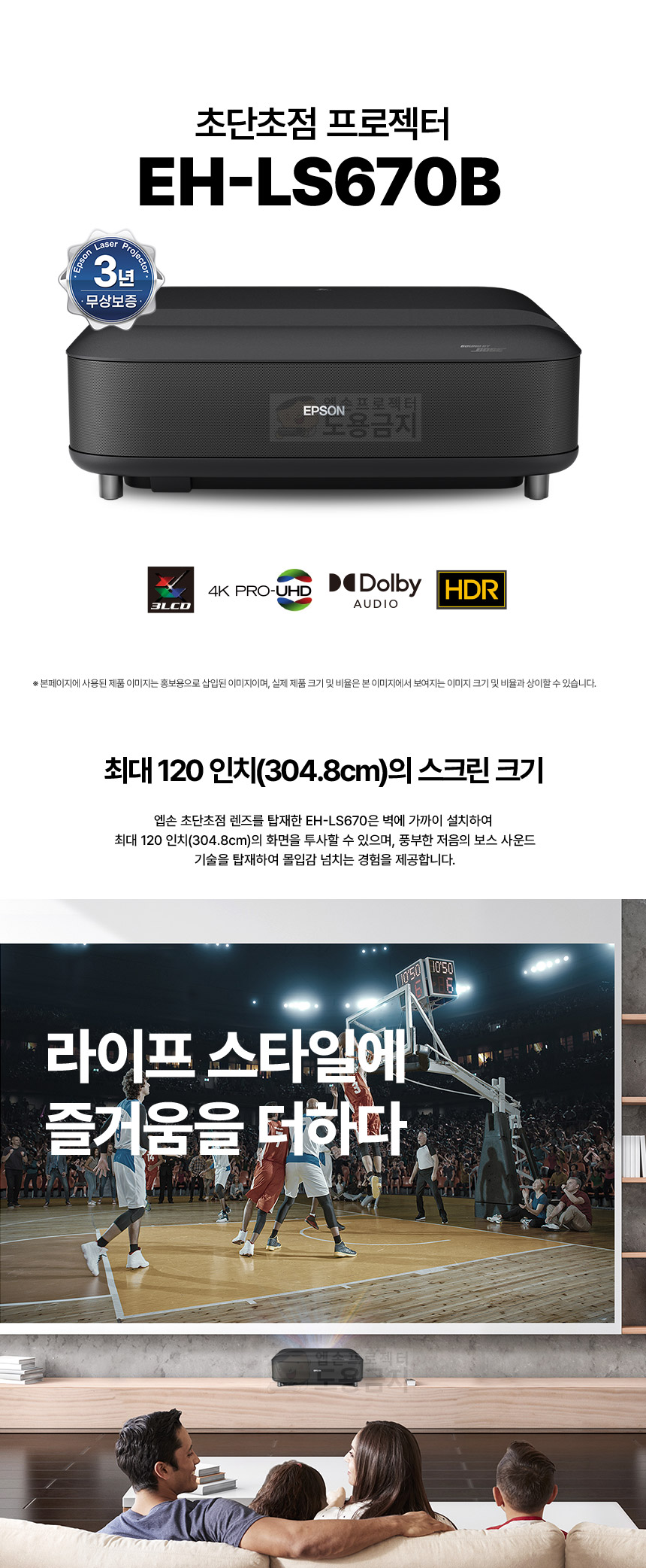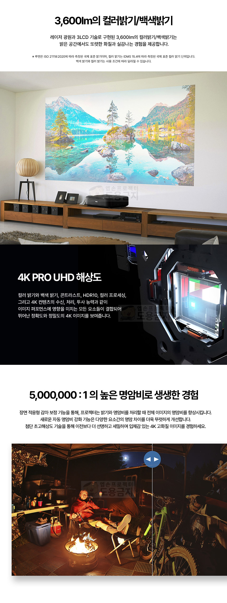 화면사양 3600 / 4K / 초단초점 / 레이저
